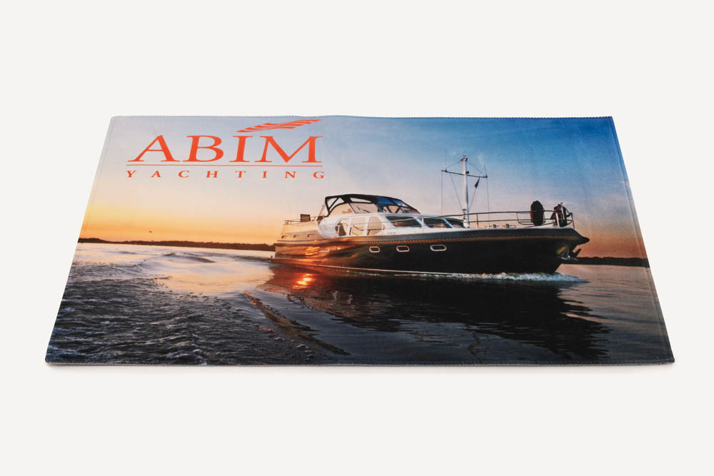 Teppich 70 x 50 cm. bedruckt mit einem Foto eines ABIM Classic vor der untergehenden Sonne.